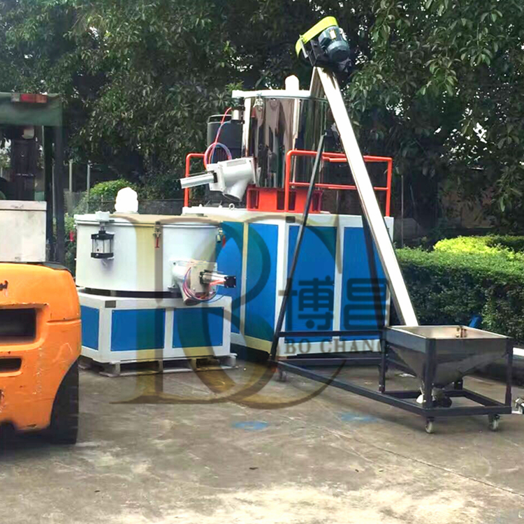 高混機組由機架、傳動、鍋體、升降、出料口及電控箱七個部分組成。高混機采用封閉式的結構,合理、美觀。傳動部件:攪拌槳由不銹鋼制造,經機械仔細加工,耐磨、耐腐蝕。鍋體為多層結構,分內層、外層、夾層,內層不銹鋼焊制,桶內壁、桶底均采用銹鋼制作,圓弧形鍋底,內表面極為光滑堅硬,耐磨、耐腐蝕,不易沾料。混合機鍋蓋是由鋁合金鑄造的。內表面經過精車、拋光,做工精細,它由氣缸抬起后,可沿垂直方向回轉水平順時針旋轉,蓋上開有加樹脂、增塑劑、穩定劑的孔及透氣孔。博昌可按照用戶實際需求定制各種機型。