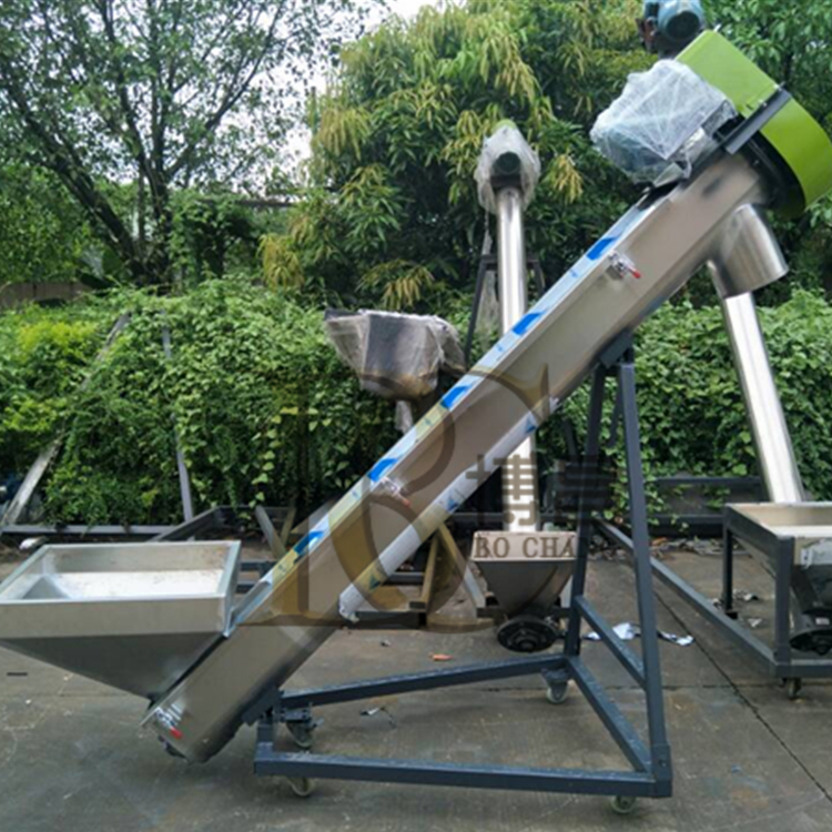 螺旋上料機、螺桿上料機、螺旋輸送機、螺旋傳動上料機為塑料加工機械所需的配套輔機,可將粉狀、片狀或顆粒狀塑料原料直接自動輸送至料斗內。接觸物料采不銹鋼制作,輸送過程中原料完全不受污染,不帶任何異物,能使生產過程中實現全封閉自動化。