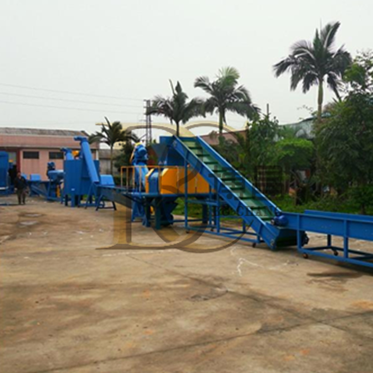 廢舊PET瓶破碎清洗流水線分選完主要的透明顏色后,就是進行破碎過程,將整瓶破碎至22-35大小(也可以一次破碎成12-16規格,但粉沫損耗大),破碎完后再進行蓋子(PP塑料)與瓶片的分離,使用水槽可以有效的將瓶蓋與瓶片分離開來,瓶蓋是浮水塑料,瓶片是沉水塑料,分離掉瓶蓋后,再抽入高濕蒸煮鍋內進行蒸煮,放入一定比例的燒堿或清洗劑,可以有效的清除瓶片上的污物、油污等雜漬,經過高溫煮過的瓶片下一道工序是摩擦清洗,摩擦清洗是去除粘在瓶片表面的附著物,更有我公司新型設計的超聲波清洗,去污能力強,接下來就是經過清洗漂洗階段,漂除瓶片上的燒堿及其它雜物,至此,瓶片已清洗干凈,然后就是進行脫水烘干環節,接下來可以直接打包封裝出售。
