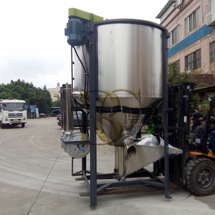 塑料顆粒攪拌機的特色:料筒及螺旋葉均選用不銹鋼,簡單清洗,機架選用結構規劃制作,堅固經用,螺旋槳焊接后全體加工,同心度高,作業平穩,直立式操作,占地少,密封式拌和,混料均勻,覺無漏料,馬力小,混合量大,速度快,機架底部規劃油脂加注設備及排料設備,軸承經用。
